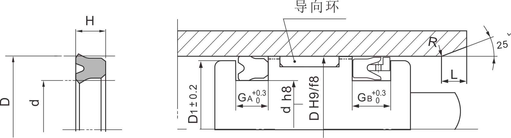 壓緊型密封圈,采用對稱斷面設計,和腔體外緣采用過盈配合。